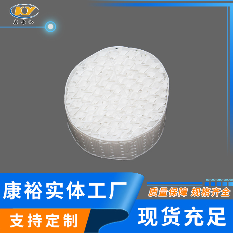 塑料波紋規(guī)整填料結(jié)構(gòu)合理,品種齊全,質(zhì)量可靠,廣泛用于各種吸收和解吸單元操作,如鹽酸、硫酸工業(yè)、天然氣行業(yè)、環(huán)保廢氣凈化處理及解吸脫氣裝置等,用于污水處理,脫二氧化碳、脫硫、凈水塔、煤氣、鋼鐵焦化洗氨塔、化工、化肥中各類塔的填充料。
