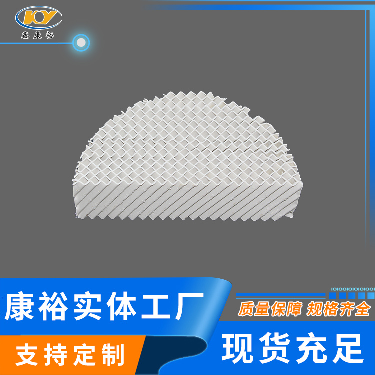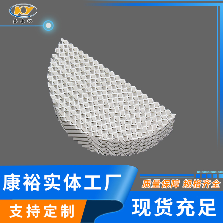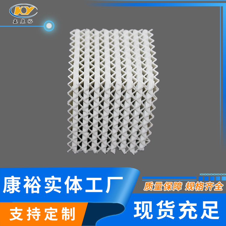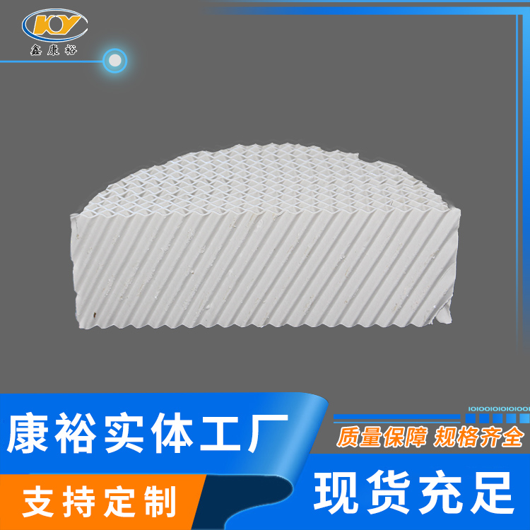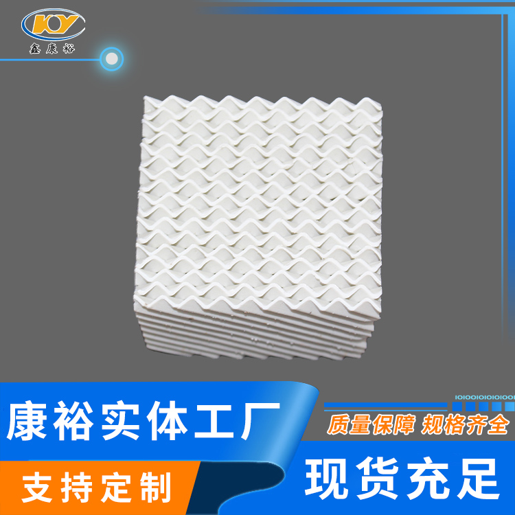 陶瓷波紋填料是一種新型規(guī)整填料,它是由許多具有相同幾何形狀的填料單元體組成。由于陶瓷的結(jié)構(gòu),具有良好的親水性能,其表面可形成極薄的液膜的湍動及氣流的傾斜曲折通道能氣流但又不阻擋氣流使陶瓷填料能與金屬填料相匹敵,而其耐腐蝕、耐高溫性能金屬填料卻無法相比。表面結(jié)構(gòu)有良好的濕潤性能,能使液體加快流動、使填料滯液量降至低。從而降低了過熱、聚合和結(jié)焦的機(jī)會。