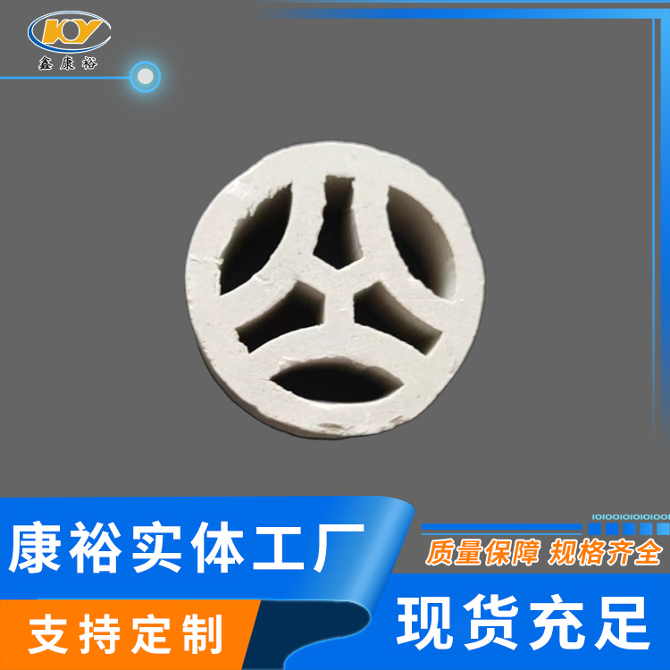 陶瓷三丫環(huán)因其優(yōu)異的工藝加工條件,如原料優(yōu)選,真空擠壓成型以及嚴(yán)格控制燒結(jié)工藝中的火焰氣氛,使得陶瓷三丫環(huán)具有瓷質(zhì)致密,色澤均勻,機(jī)械強(qiáng)度高,耐壓力沖擊,抗熱震性能好,耐搬運(yùn)不破損的優(yōu)點(diǎn)。同時(shí)陶瓷三丫環(huán)結(jié)構(gòu)空間性能好,床層使用通氣量大、比表面大、氣液分布均勻、阻力小、壓降低、強(qiáng)度高、氣液傳質(zhì)性能比一般填料好。