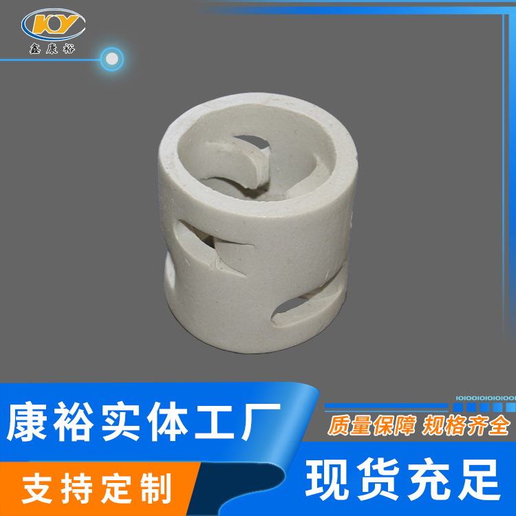 康裕陶瓷鮑爾環(huán)填料是一種高徑相等的開(kāi)孔環(huán)型填料,每層窗孔有5個(gè)舌葉,每個(gè)舌葉內(nèi)彎指向環(huán)心,上下兩層窗孔的位置相反錯(cuò)開(kāi),一般開(kāi)孔面積約占環(huán)壁總面積的30%左右。