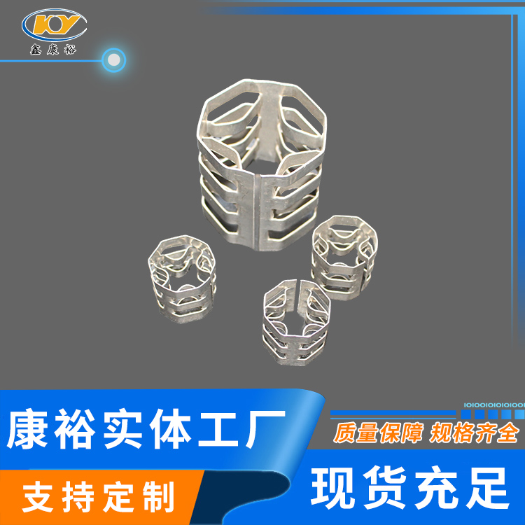 康裕金屬八四內(nèi)弧環(huán)類(lèi)似花環(huán)開(kāi)關(guān)的金屬填料,也稱(chēng)麥勒環(huán)填料。它的特點(diǎn)是環(huán)壁開(kāi)敞面積大,所以具有通量大、阻力小和傳質(zhì)效率高等特點(diǎn)。