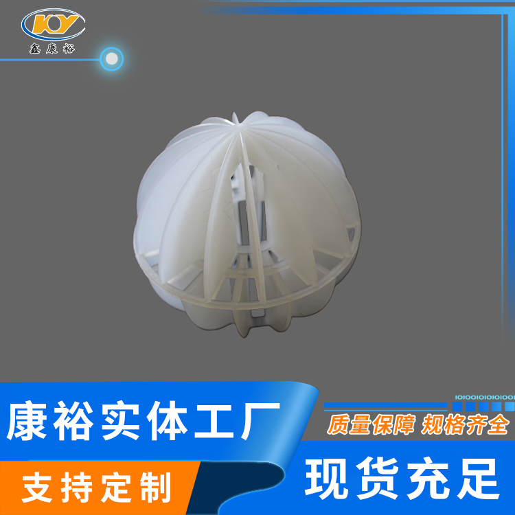 塑料多面空心球填料是水處理項(xiàng)目和廢氣處理常用到的一種填料,也是現(xiàn)在環(huán)保裝置項(xiàng)目常見的一種填料,大多采用聚丙烯(PP)塑料制成。多面空心球填料,在球中部沿整個(gè)周長有一道加固環(huán),環(huán)的上下各有十二片球瓣,上下球瓣互相交錯(cuò),沿中心軸呈放射形布置。多面空心球填料具有表面積大,傳質(zhì)效率高,產(chǎn)品的球瓣與球瓣之間空間大,且重量輕、強(qiáng)度大、安裝方便、葉片多,阻力小,耐高溫,耐腐蝕,性能穩(wěn)定,適用于中間水箱,二氧化碳脫氧塔,接觸反應(yīng)塔等裝置。在全國電力、化學(xué)、化纖、電子、造紙、化肥生產(chǎn)、河水淡化,環(huán)保、三廢處理等行業(yè)的水處理、脫碳、脫氣、凈化、脫碳酸及油水分離等處理裝置中廣泛使用。